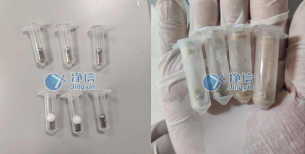 上圖為1分鐘的研磨效果,已經完全研磨完成,達到老師預期效果。研磨管一次可以做24個樣品,經過全自動冷凍組織研磨儀的研磨處理后,蘋果樹枝條能夠快速被研磨成細小的顆粒,從而方便后續的分析。同時,該研磨儀的運行過程中不會引入外界污染,從而保證了樣品的純度。經過多次了解和對比所以老師們選用凈信研磨儀代替人工處理。效率高,效果好。成功的解決了老師的研磨問題。