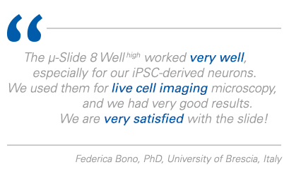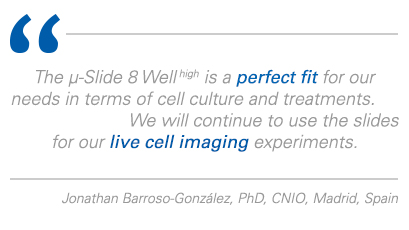 The μ-Slide 8 Well high enables high-resolution live cell imaging using different microscopy techniques.