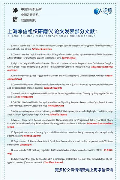 上海凈信發(fā)明的"Tissuelyser系列多樣品組織研磨機“和”JXFSTPRP系列三維運動的全自動樣品快速研磨機",冷凍研磨機,高能研磨機,臼式研磨機等產(chǎn)品,先后在中科院、農(nóng)科院、醫(yī)科院等高等研究院所以及上海交通大學(xué)、復(fù)旦大學(xué)、浙江大學(xué)、香港中文大學(xué)、香港理工大學(xué)等大專院校的國家重點實驗室受到青睞而被廣泛采用。依托強大的研發(fā)和生產(chǎn)服務(wù)能力,多年來已成功為數(shù)萬個實驗室提供服務(wù)。