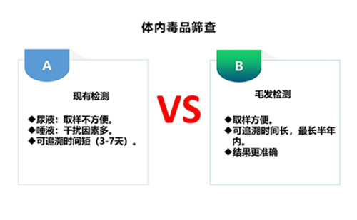 現(xiàn)今比較常見的毒檢測(cè)大致有:尿液、唾液、血液、毛發(fā),不同種類的檢材具有不同的吸毒追溯期,目前以尿液檢測(cè)較為常見。但是,體液檢查會(huì)受到時(shí)間的影響。與尿液、血液等檢材相比,毛發(fā)樣品顯著的優(yōu)勢(shì)是它延長(zhǎng)了吸毒追溯期。毒品隨著血液循環(huán)進(jìn)入毛囊,毒品原體及其代謝物會(huì)被毛發(fā)中的角質(zhì)蛋白固定,并穩(wěn)定地保留在毛發(fā)中。