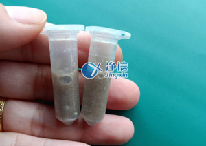干磨:剪適量頭發放入2ML離心管中,加入研磨珠若干顆,將裝有樣本的離心管放入研磨孔中,分布均勻擺放,若樣本數量低于8個,需用空管配比均勻,間隔相同數量研磨孔擺放樣品管和空管,以保證研磨過程中受力均勻,管子不被打破,離心管擺放后,蓋上機器蓋子,設置研磨參數,將檔速調制4檔,研磨時間設置為5分鐘,按開始鍵進行研磨,干磨效果較好,基本一次就可以研磨成功