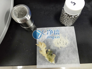 將海底珊瑚剪成小塊放入50毫升鋼罐中,加入專用研磨珠擰緊鋼罐后放入研磨機里,調整好參數待結束后即可得到實驗結果。