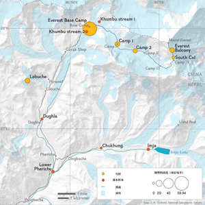 報道稱,“污染嚴重的樣本來自位于尼泊爾境內的珠峰大本營,那里是珠峰上人類活動較集中的地方。每公升積雪含有79個微粒。取樣地點位于海拔8440米處,即位于珠峰峰頂下方408米處,該樣本中每公升積雪含有12個塑料微粒。在珠穆朗瑪峰上發(fā)現(xiàn)的微塑料大都源自合成纖維,包括聚酯纖維和丙烯酸纖維,系制作登山者衣服和裝備所用的材料。”