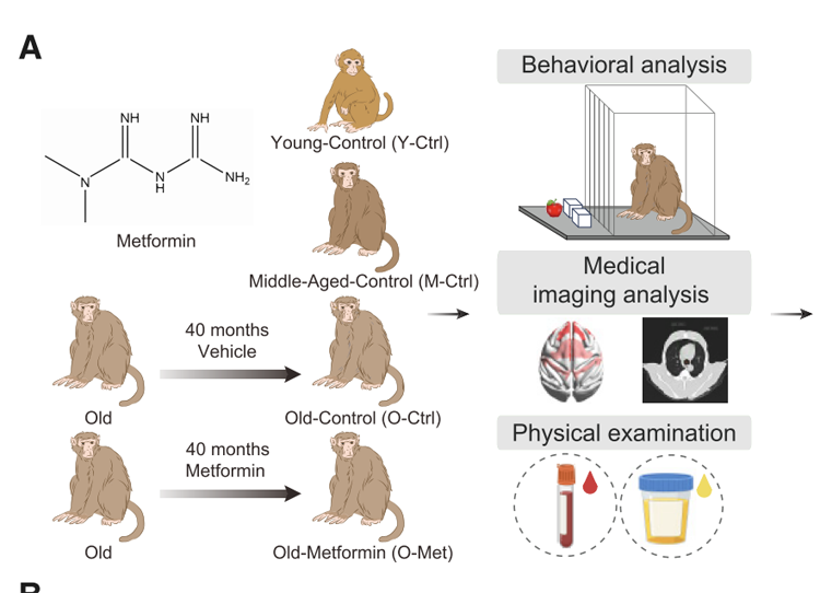 隨著全球人口老齡化的加劇,衰老及其相關(guān)疾病的防治成為亟待解決的重大科學(xué)問題。二甲雙胍作為一種經(jīng)典的降糖藥物,近年來被發(fā)現(xiàn)具有顯著的抗衰老效果。然而,其具體作用機制尚不明確。為了深入研究二甲雙胍對靈長類動物衰老的影響,劉光慧團隊展開了長達8年的研究。