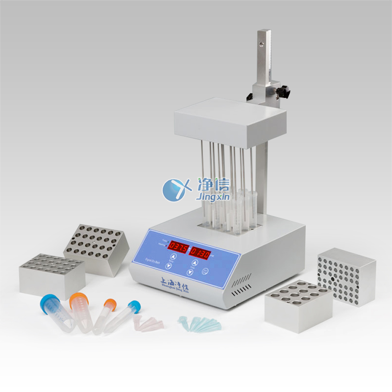 JXDC-10氮氣吹掃儀采用微電腦和PID模糊控制技術,利用高純度鋁材料做為導熱介質,以代替傳統的水浴裝置,具有使用方便、控溫范圍大、精度高等特點。其工作原理是將氮氣或空氣快速、連續、可控地吹到加熱樣品表面,并根據被濃縮溶劑的蒸發速度和沸點,設定加熱溫度,實現大量樣品的快速濃縮。